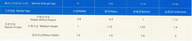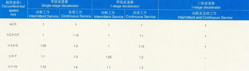 a.選用NGW型行星減速器時,應根據(jù)使用條件按下式計算:Nx=NsKlK2或Mx=MsKlK2