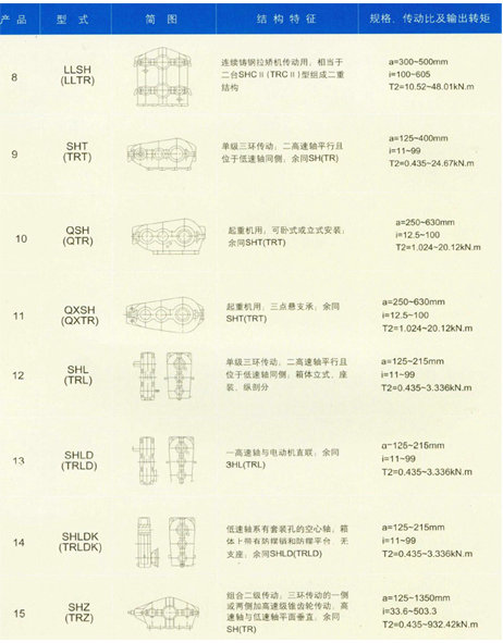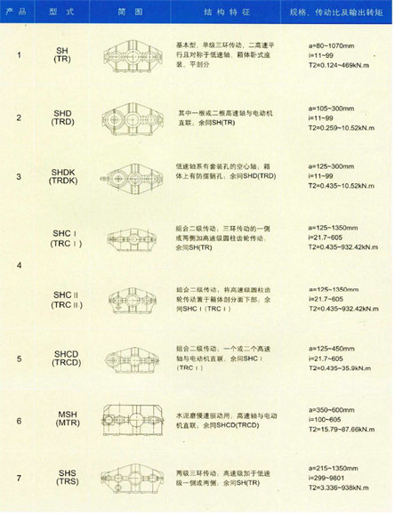 減速器基本型結構,公稱中心距215mm,傳動比81,裝配型式111a,軸伸型式均為圓柱軸伸,標記為:減速器SH215-81-111a或TR215-81-111a(輸入輸出軸伸型式省略)。
